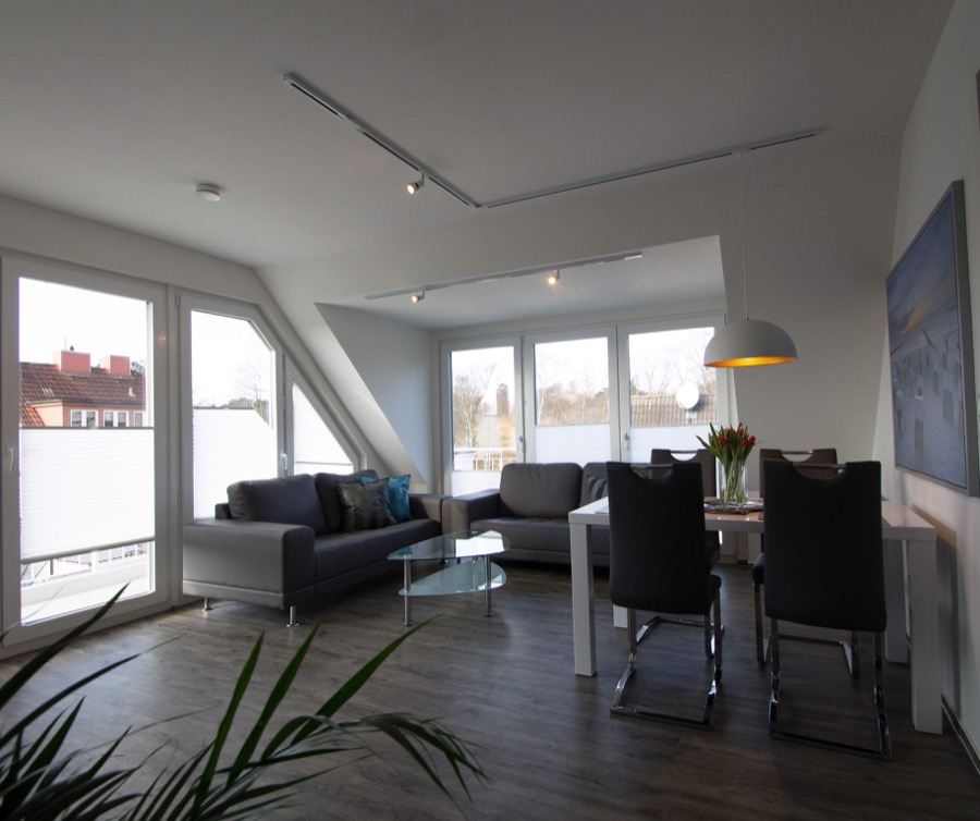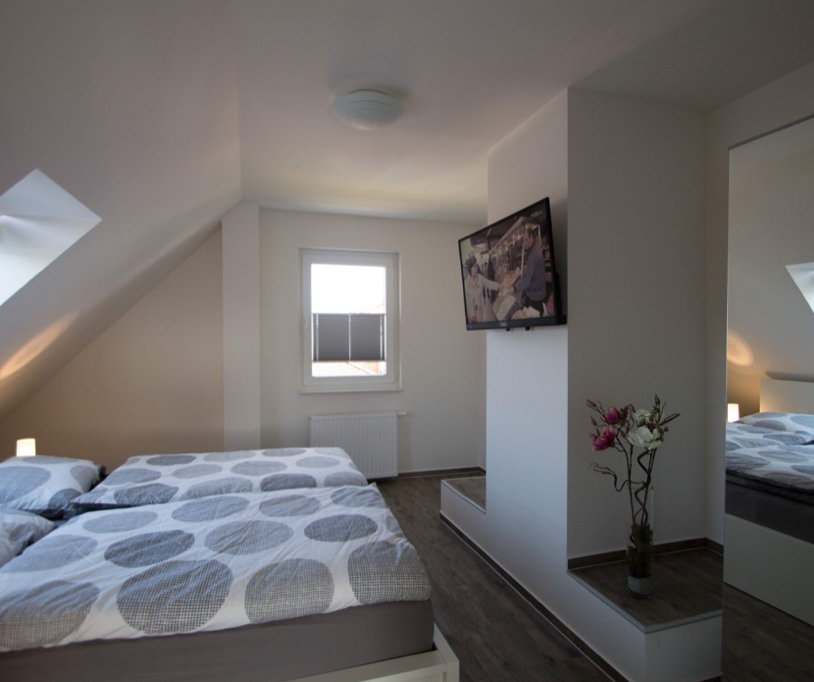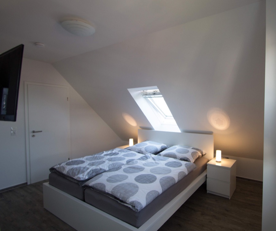 Die Wohnung wurde im Dezember 2015 fertiggestellt, ist ca. 75qm groß, geht über zwei Etagen, verfügt über einen großen Eckbalkon und ist für eine 5-köpfige Familie oder zwei Paare ausgelegt.